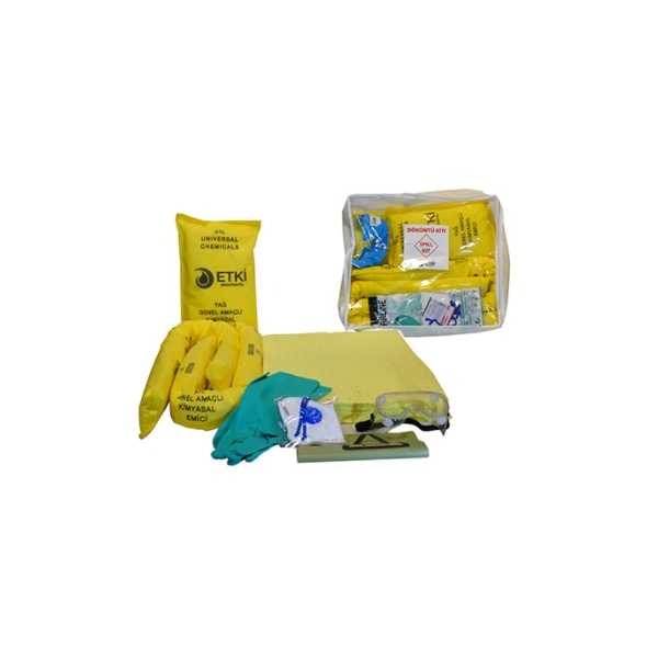 20 Adet Emici Ped (40 x 50 cm) 2 Adet Emici Sosis (8 x 120 cm) 1 Adet Emici Yastık (40 x 25 cm) 1 Set KKD Ekipmanları; Nitril Eldiven, Gözlük, Atık Torbası