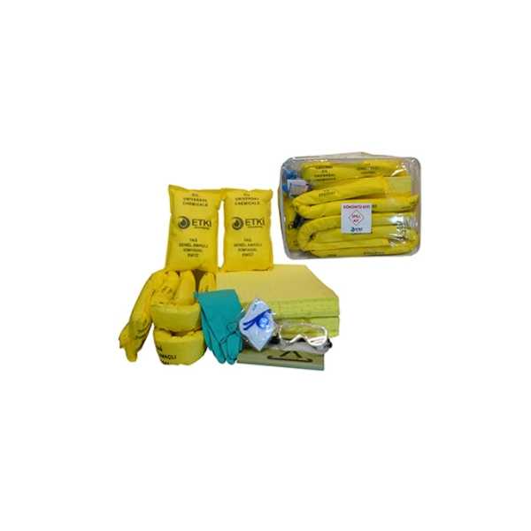 40 Adet Emici Ped (40 x 50 cm) 4 Adet Emici Sosis (8 x 120 cm) 2 Adet Emici Yastık (40 x 25 cm) 1 Set KKD Ekipmanları; Nitril Eldiven, Gözlük, Atık Torbası
